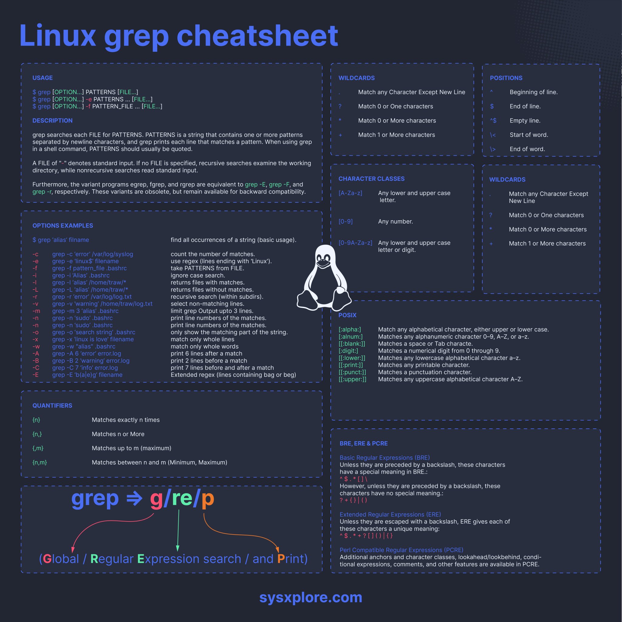 Linux grep command cheatsheet