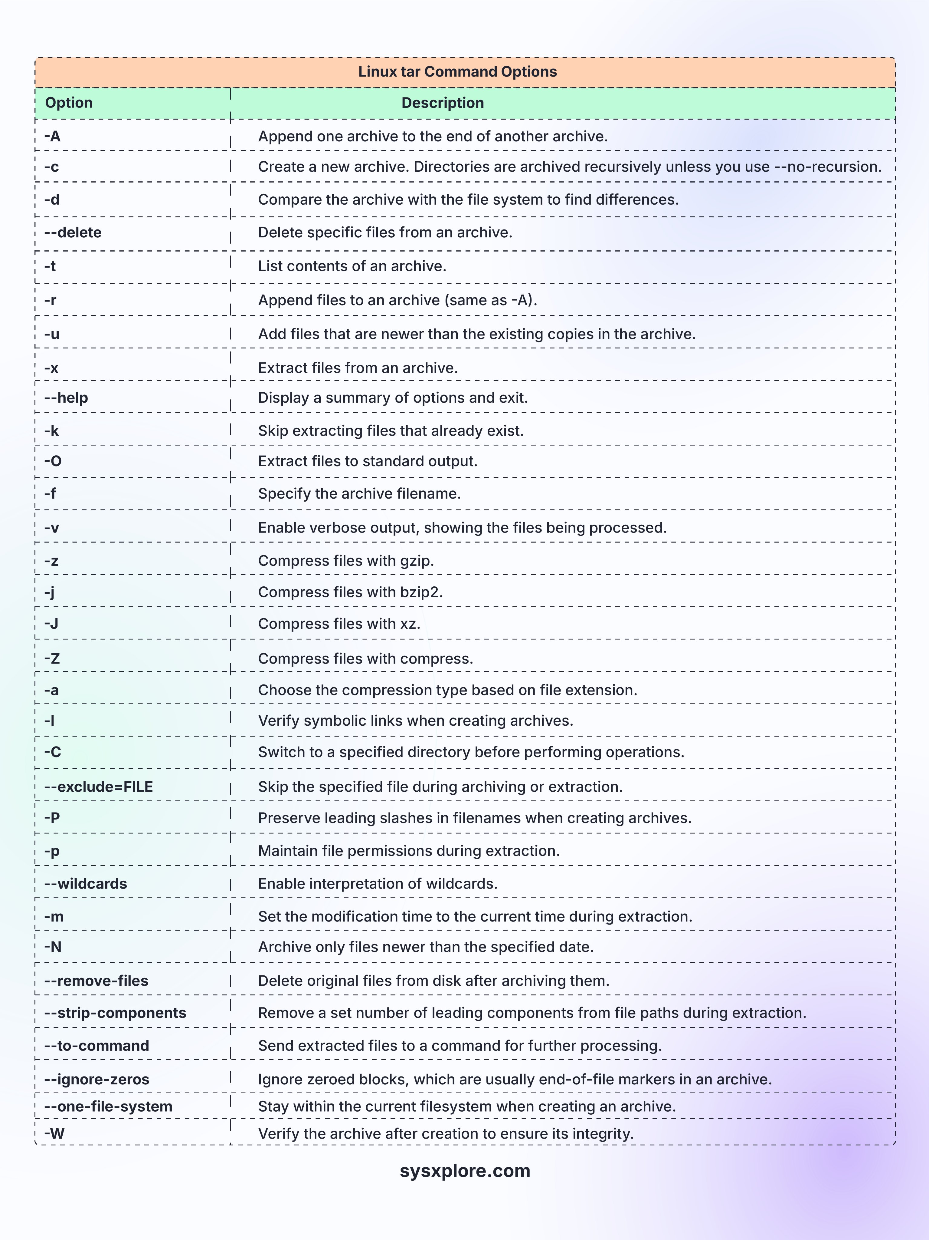 Linux tar command cheatsheet