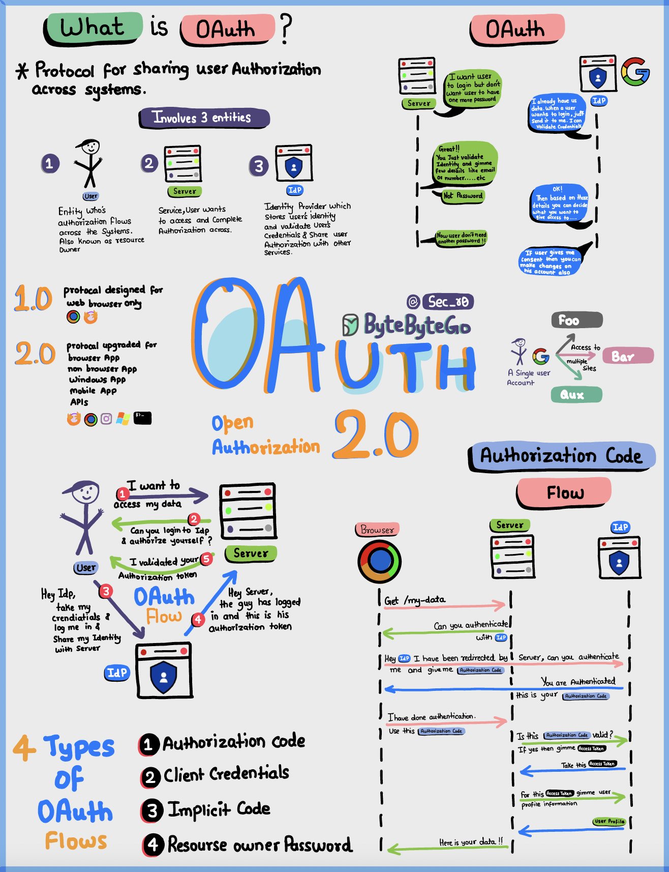 OAuth 2.0 is a powerful and secure framework that allows different applications to securely interact with each other on behalf of users without sharing sensitive credentials.The entities involved in OAuth are the User, the Server, and the Identity Provider (IDP).