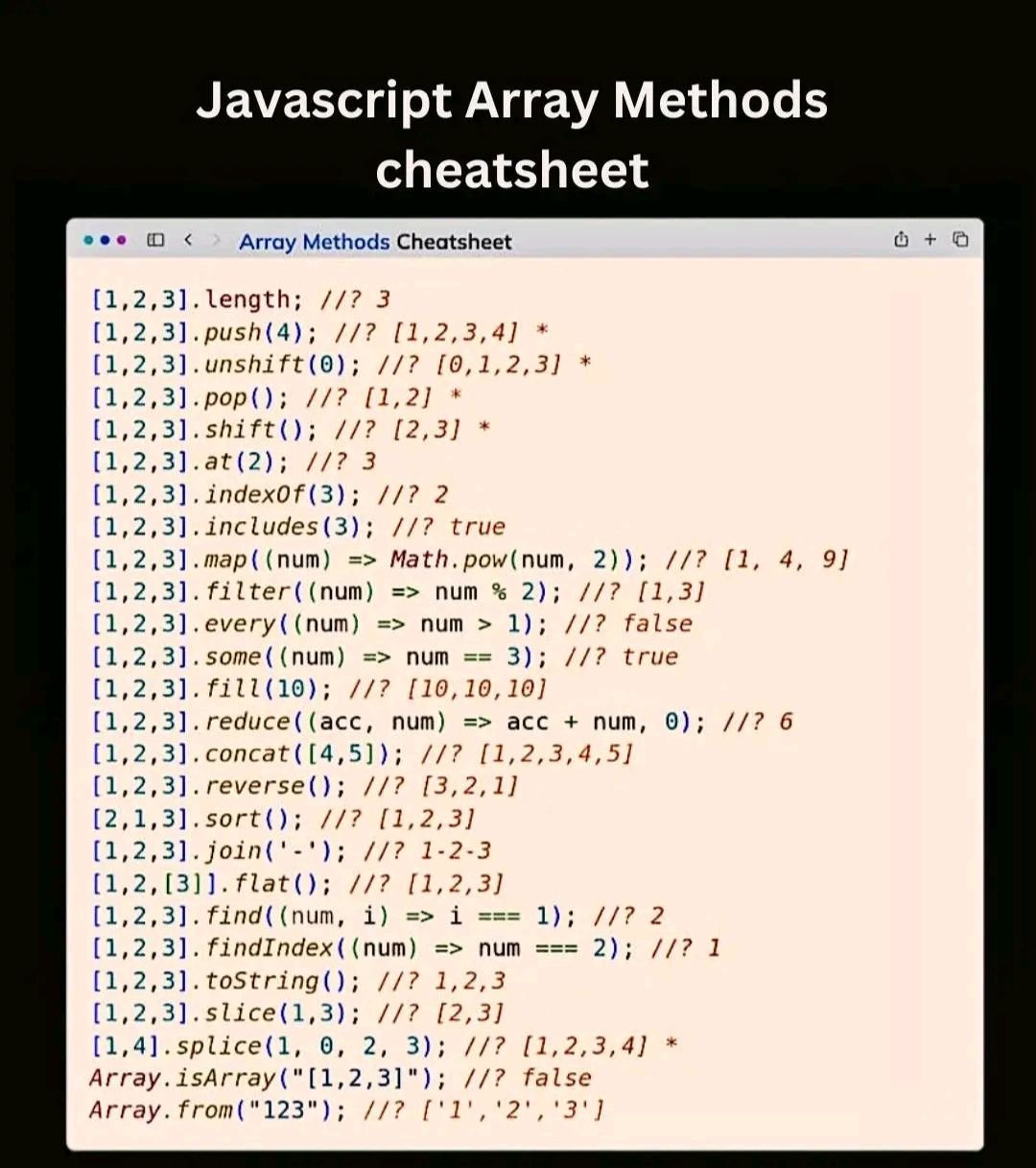 JavaScript array methods cheatsheet